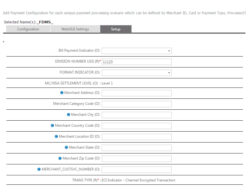 Fraud Provider: Name of the fraud provider. Checkbox option for Using the Test Fraud Provider - applicable for QA only.