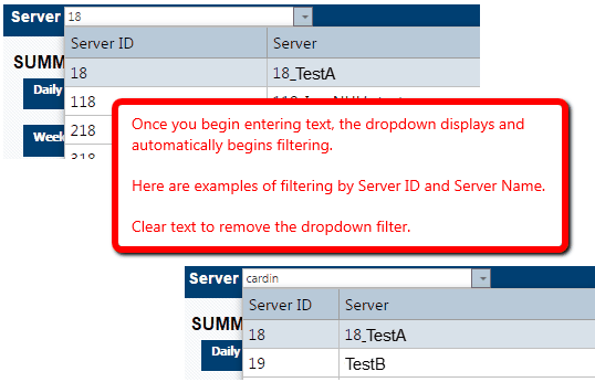 You can filter the Server drop-down list to limit the number of items. This is especially useful if you have numerous payment configurations (also referred to as Server IDs or XIIDs).