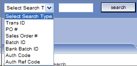 Use Quick Search to locate transactions by transaction ID, purchase order number, or any of a number of other search types. Select the search type, enter search text, and then click Search.